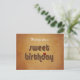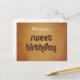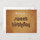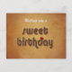 Uma saudação de aniversário de chocolate com um arco vermelho em um fundo verde.