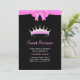 Coroa doce de diamante brilhante em 16 no Convite de festas preto. Texto pronto para ser personalizado para 15, 16ª comemoração de aniversário.