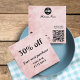 Chic Pastel Rosa e Dourado Cards de Desconto de Fidelidade do Código QR para Belas Empresas! Recompense seus clientes leais com esses cartões elegantes e modernos de desconto de fidelidade de código QR, cor-de-rosa e cor-de-rosa-preto. Perfeito para maquiadores, cosmetólogos, salões de beleza e negócios especializados em beleza, cabelos, unhas e chibatadas, essas cartas oferecem um toque de sofisticação e profissionalismo. O fundo cor-de-rosa macio complementa os sotaques metálicos dourados fluidos, criando um design visualmente atraente. A frente indica claramente "Adicionar seu desconto", permitindo ofertas personalizadas, enquanto a parte traseira fornece espaço para seu nome comercial, endereço, número de telefone, email, site e um código QR digitalizável que se vincula à sua presença on-line. Estes cartões são uma ferramenta valiosa para criar lealdade aos clientes, encorajar visitas repetidas e fortalecer as relações com os clientes. _______________________________ Imprima a sua clientela com estes cartões de desconto quentes e profissionais que complementam perfeitamente os seus serviços de alta qualidade.