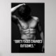 This minimalist fitness quote highlights the power of calm discipline and mental focus. “Quiet focus changes outcomes” speaks to consistent effort without noise or distraction. Perfect for gyms, workout rooms, or anyone who believes real progress comes from steady, focused work over time.