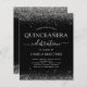 Os Convites de festas de Celebração de Silver e Black Faux Glitter Sparkle Girly Quinceanera incluem bela e elegante tipografia de roteiro para a celebração especial de 15.