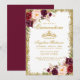 Quinceanera Burgundy Glitter Dourado Floral e Cartão de Convite Coroa - Borgonha