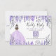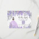 Placa de gabinete RSVP do partido Purple Quinceañera: esta placa de gabinete horizontal elegante foi projetada para a conveniência de RSVP digital. A frente apresenta um código QR personalizável, fazer simples para os convidados a RSVP através do seu site ou formulário de eventos, com um ponto adicional para exibir um URL de site. Flores de cor d'água púrpura lilás e lavandas alinham graciosamente o topo, com tons que vão de violeta profunda a lavanda macia. Uma garota com um vestido brilhante roxo na esquerda adiciona um toque pessoal e encantador. O dorso continua o design floral ao longo do topo, acompanhado por um brilho falso tiara para um toque real. Há espaço para o nome da aniversariante e "Mis Quince" na tipografia de na moda. O fundo branco limpo fornece uma aparência polida, mas pode ser personalizado para qualquer cor que você escolher. Este cartão de cerimônia combina tradição e tecnologia, complementando perfeitamente uma variedade de temas da Quinceañera. Disponível como cartão impresso.
