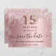 Uma garota e moda Salve o cartão de data para uma Quinceañera, 15 festa de aniversário. Fundo cor-de-rosa pincelado decorado com confete prateado rosa e falso. Personalize e adicione uma data e um nome/texto. O texto: Salvar a Data é gravado com um script de estilo com letra de tendência grande com alternâncias. Número 15 com uma fonte no estilo do balão.