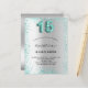 Um convite moderno, na moda e glamouroso para a Quinceañera, festa de aniversário 15. Um fundo de aspecto fino prateado, decorado com pó brilhante colorido. Personalize e adicione o seu nome e detalhes da festa. O número 15 é escrito com uma fonte de estilo balão, script. Dica: Se você não quiser que pareça um cartão postal, clique em personalizar, vá para o verso e remova o divisor e o carimbo de posto.