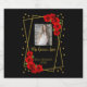Quinceañera Dourada e preta com rosas vermelhas tradicionais vibrantes e tipografia clássica. Modelo de foto via Pixabay licenciado sob CC0 e deve ser substituído por sua própria foto