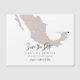 Esta imã salve a data de viagem apresenta um mapa do México esmaecido com cor totalmente editável. Altere facilmente as cores e mova o coração para realçar seu destino clicando no botão 'editar usando a ferramenta design'. Edite o texto *maioria* para atender às suas necessidades. Esta imã salve a data de destino é a maneira perfeita de lembrar aos seus convidados o seu evento especial que se avizinha.
