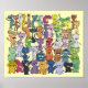 Cinquenta Felizes Cats é uma elevada colagem digital de cinquenta personagens de desenho animados de Blues de Gato Laranja a sorrir e a rir. Foram desenhados individualmente em caneta e tinta em papel de imprensa quente, digitalizados, coloridos digitalmente através de tablet e sentidos texturizados em cinquenta diferentes matizes, dando a esta peça uma aparência exclusivamente macia que lembra marionetes ou brinquedos amados. Essa design oferece bastante cor e tempo de imaginação para um quarto de berçário ou de criança, acrescenta qualidade calmante aos consultórios veterinários e, com 50 matizes e tons, vai combinar algo em quase qualquer decoração geral.