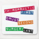 Este texto colorido que diz a "quiroterapia primeiramente, drogas do olhar da etiqueta do perfurador das características de design em segundo, último da cirurgia."