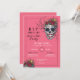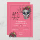 Este convite moderno e surpreendente é excelente de celebrar uma Festa de solteira com um tema "Vida Solteiro R.I.P." ou "Morte à minha Vida Solteiro" de uma forma humorística. Apresenta uma ilustração ao estilo da tatuagem com crânios, rosas e espirais. A aparência é chic com um toque de humor negro, e vai dar o tom para diversão com seus namoradas.