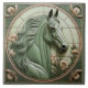 Sage green & cream faux relief horse head ceramic tile inspired by Art Nouveau and Arts and Crafts movements with a floral background. Perfect for a housewarming gift to use as a trivet or to add a decorative tile in your own tiling. The ceramic tile is smooth, with a faux 3D effect. This is the right facing tile. Pair it with the left facing tile for a symmetrical tiling decor.