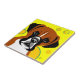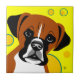 Arte vetorial do cão Boxer com círculos laranja claro e cor de fundo amarelo.