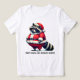 Um guaxinim baleado vestido com um terno vermelho brilhante, completo com um cinturão branco e cinturão liso, emana um espírito alegre durante o feriado, convidando risos e alegria.