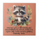 Melhore o quarto do seu filho com este belo azulejo de cerâmica quadrada de 20" com um adorável design de guaxinim em fundo rosa e uma oração cristã corajosa. Este azulejo único e durável é perfeito para adicionar um toque de inspiração e charme a qualquer espaço. Caro Deus, me dê a curiosidade e a engenhosidade de um guaxinim. Guie-me a explorar com admiração e a resolver problemas criativamente. Amen