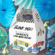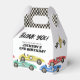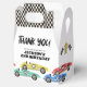 Carro de corrida, festa de aniversário de caixas com carros de corrida, bandeiras com caixa, troféu, e um obrigado que é fácil de personalizar.