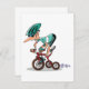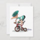 Um legal design de um guincho em um triciclo. Este design vê o tipo no triciclo a agarrar os dentes quando está fora de corrida. O triciclo é vermelho e o cara está vestindo uma camisa verde e um capacete. Este racer no tricycle design parece excelente nestes convites