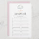 Este jogo de corrida de chás de fraldas de bebês de nuvens de chuva é perfeito para um chá de fraldas moderno. O design bonito e simples apresenta pincel pastel, rosa claro, gotas d'água amarelas e cinzas, caindo de uma nuvem de cinza mole. Personalize a parte de trás do cartão de jogo com o nome da futura mãe e a data do chá.