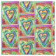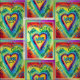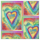 As palavras "Amor" e "Espírito" estão no centro de um coração de ouro amarelo. As cores do arco-íris irradiam do coração com diferentes palavras inspiradoras: Serenidade, Graça, Fé, Coragem, Feliz, Paz, Esperança, Amigos, Diversão, Ria, Força, Alegria.