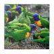 Estas aves lindíssimas coloridas do arco-íris são verdes brilhantes, azuis, vermelhas e amarelas. Eu tirei esta foto de um grande grupo deles se alimentando no chão em Victoria Austrália perto de Cape Otway.