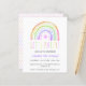 Convite personalizável de festa de aniversário do arco-íris, com um arco-íris e bolinhas coloridos, em tons de violeta, azul, roxo, amarelo, laranja, verde e cor-de-rosa sobre um fundo branco limpo. Este é um convite em papel de barato. Você é bem-vindo a visitar nossa loja Peony Design para comprar este convite no cartão ou como um digital para download.