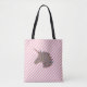 Aproveite nossa bolsa de tote de listra branca e rosa com design de silhueta unicórnio arco-íris. Excelente para a praia, classe de ioga ou compro.