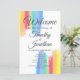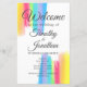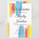 Belo programa de casamento de cor d'água do arco-íris com traçados bonito e artísticos de cor brilhante para um evento LGBTQ. Escrito elegante e bordas coloridas para trazer felicidade para o seu sindicato.