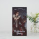 Uma mulher misteriosa em um creme e um vestido preto está entre túmulos antigos debaixo de uma lua de cheio brilhante. Lace, crânios, e uma ravina negra completam sua elegância estranha, como coalhada de névoa através dos portões sombreados do cemitério. Convite de Halloween