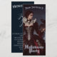 Uma mulher misteriosa em um creme e um vestido preto está entre túmulos antigos debaixo de uma lua de cheio brilhante. Lace, crânios, e uma ravina negra completam sua elegância estranha, como coalhada de névoa através dos portões sombreados do cemitério. Convite de Halloween