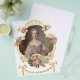 Jovem Marie Antoinette com rosas rosa e moldura dourada. Encantador para convites e anúncios, aniversários, etc. Você pode personalizar se desejar. Se precisar de ajuda ou precisar de um pedido personalizado, entre em contato com Greer em greerdesign@aol.com