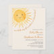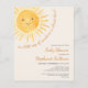 Você está planejando um chá de fraldas temático? Este belo convite para chás de fraldas de orçamento apresenta o texto "Nosso pequeno raio de sol está quase aqui!" com uma aquarela sorrindo o sol amarelo em um fundo de creme suave. Perfeito para um chá de fraldas neutro em termos de gênero. Facilmente personalizável. Porque nós criamos a nossa trabalho de arte, você não encontrará esta imagem exata de outros designers. Original Watercolor © Michele Davies.
