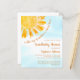 Este convite para o chá do neto do orçamento apresenta o texto "Um pequeno raio de sol está quase aqui!" com uma cor d'água amarela e céu azul. Perfeito para um chá de fraldas neutro em termos de gênero. Facilmente personalizável. Use a Ferramenta Design para alterar o tamanho, o estilo ou a cor do texto. Porque nós criamos a nossa trabalho de arte, você não encontrará esta imagem exata de outros designers. Original Watercolor © Michele Davies.