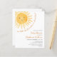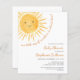 Você está planejando um chá de fraldas temático? Este belo convite para chás de fraldas apresenta o texto "Nosso pequeno raio de sol está quase aqui!" com uma aquarela sorrindo o sol amarelo. Perfeito para um chá de fraldas neutro em termos de gênero. Facilmente personalizável. Original Watercolor © Michele Davies.