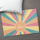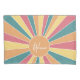 Um design de nascer do sol colorido, de faixa retrorativa, com cores pastel. As listras são pastéis - vermelho, laranja, amarelo e azul claro. Adicione o seu nome ou monograma para fazer deste um travesseiro pessoal que se destacará entre os seus amigos. O nome é um script de tendência em branco.