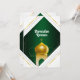 Um cartão de saudação Ramadã ou Eid com ilustração da cúpula do ouro de uma mesquita e um quadro branco moderno. Todo texto pode ser facilmente personalizado.
