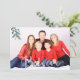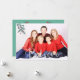 Este belo cartão com fotos de férias tem uma foto e uma mensagem diz Acredite. Você pode personalizar a parte de trás deste cartão com fotos facilmente com seu nome de família e nomes próprios. Tanto a frente como a parte de trás do cartão têm um pouco de verde, folhas, galhos e bagas!