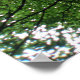 Esta bela impressão apresenta uma fotografia tirada de dentro de uma floresta densa. A fotografia mostra a vista do céu através de uma emaranhada e bela teia de galhos de árvores e folhas verdes e lusaciosas.