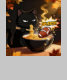 In the heart of autumn, under a golden canopy of falling leaves, a cool and collected black cat enjoys his steaming bowl of noodles. He’s so deeply immersed in his moment of zen that even a rogue football splashing into his ramen doesn’t break his calm. “SPLATCH!” echoes the chaos, but our cat doesn’t flinch — because when you’ve mastered inner peace, not even game day can disturb your noodle time.