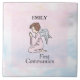 Enviar saudações e desejos da Primeira Comunhão a uma garota especial. O presente perfeito, lembrança e presente mostrando um anjo menina na design.