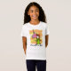 Uma garota de cabelos castanhos com um cupcake grande rosa, com uma vela em uma camiseta de aniversário personalizável que ela certamente adorará vestir em seu dia especial!