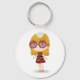 Uma garota com óculos grandes e vestindo um vestido listrado. Esta design parece realmente eficaz nestes Chaveiro