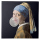 Rapariga com pérola soprando uma pastilha elástica