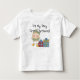 Uma menina adorável com presentes de Natal e texto que diz "É o meu primeiro Natal" nas primeiras T-shirts de Natal, carroças, canecas, cartões, autocolantes, sacos de totas de férias, ímãs e outros equipamentos de Natal que você pode facilmente personalizar antes de pedir com o nome da sua bebê!