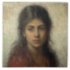 Este design apresenta uma pintura do artista russo Alexei Alexeievich Harlamoff (1840-1925). Mostra uma linda jovem com cabelo castanho escuro e lábios vermelhos cheios. Ela está vestindo um xale vermelho e está encarando com firmeza a distância média. É uma imagem de beleza feminina.