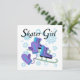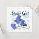 Nossas camisetas design de Rapariga da Patinadora, canecas, bolsas, cartas, travesseiros, relógios de parede, capozes, e outros itens de temas de patinagem apresentam um par de skates azuis e lavandas e mitenes em uma corda cercada por muitos flocos de neve e texto que lê Skater Girl!