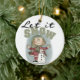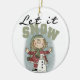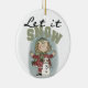 Uma menina e um boneco de neve com texto que lê "Deixe-a nevar" em ornamentos de manutenção que você pode mudar a forma antes de pedir.