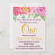 Rapariga Primeira 1rua Convidada Uma Festa de aniversário / Rapariga de primeiro aniversario Floral / Rosa e Dourada Primeira Convidada de Aniversário / Flores Aquarela