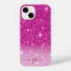 Minúsculo iPhone 14 Minúsculo Rosa Brilhante Girly Monograma