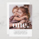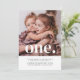 Um simples convite para o primeiro aniversário gêmeo com sua própria foto e a palavra "um" no topo.