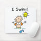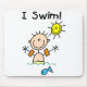 Uma figura de vareta de menino natação com o peixe e o sol sorri sobre ele neste bonitinho e colorido garoto que é personalizável para que você possa adicionar um nome