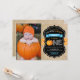 Menino Pumpkin Primeiro Convite de Aniversário com foto personalizada, laranja e azul, chalkborad e fundo burlap background.